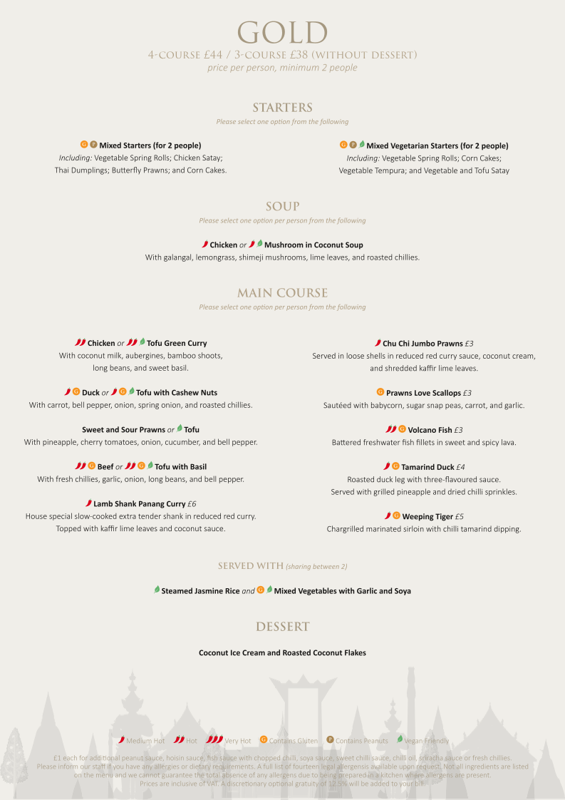 The spiciest curry in the house cooked without coconut milk in fresh Thai herbs, aubergines, bamboo shoots and long beans - great for chilli lovers.